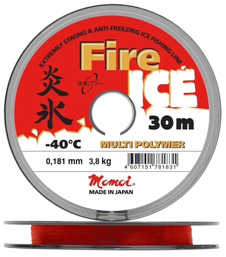 Монофильная леска для рыбалки Momoi FIRE ICE, 0.181 мм, 3.8 кг, 30 м, зимняя леска, 1 шт информация: