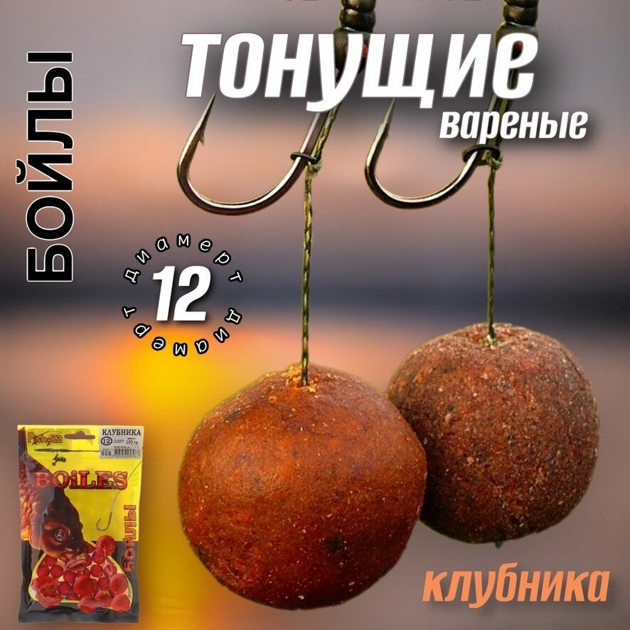 Насадка рыболовная / Прикормка для рыбалки Бойлы Тонущие вареные / Приманка для карпа карася сазана / добавка клубника информация:
