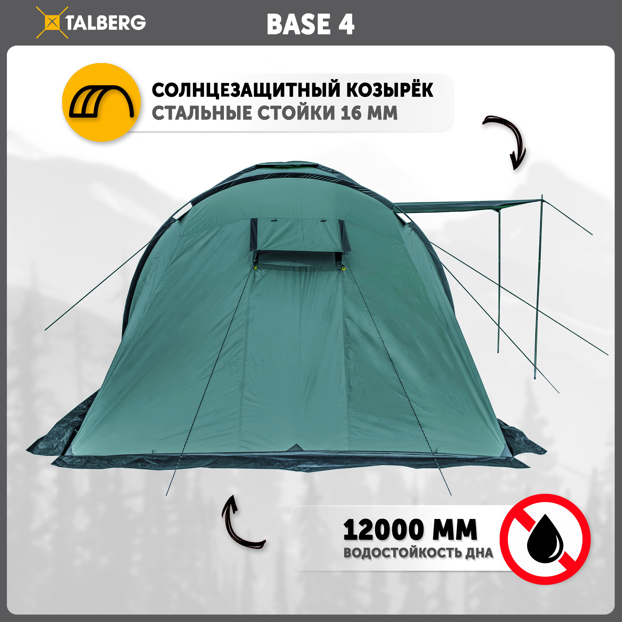 Палатка кемпинговая Talberg BASE 4 , зелёный информация: