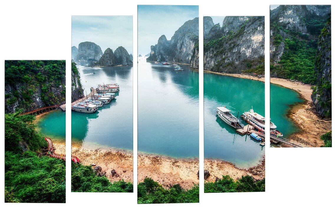Картина модульная Картиномания "Туристические джонки во вьетнамском заливе Халонг" размер 140х90 см информация: