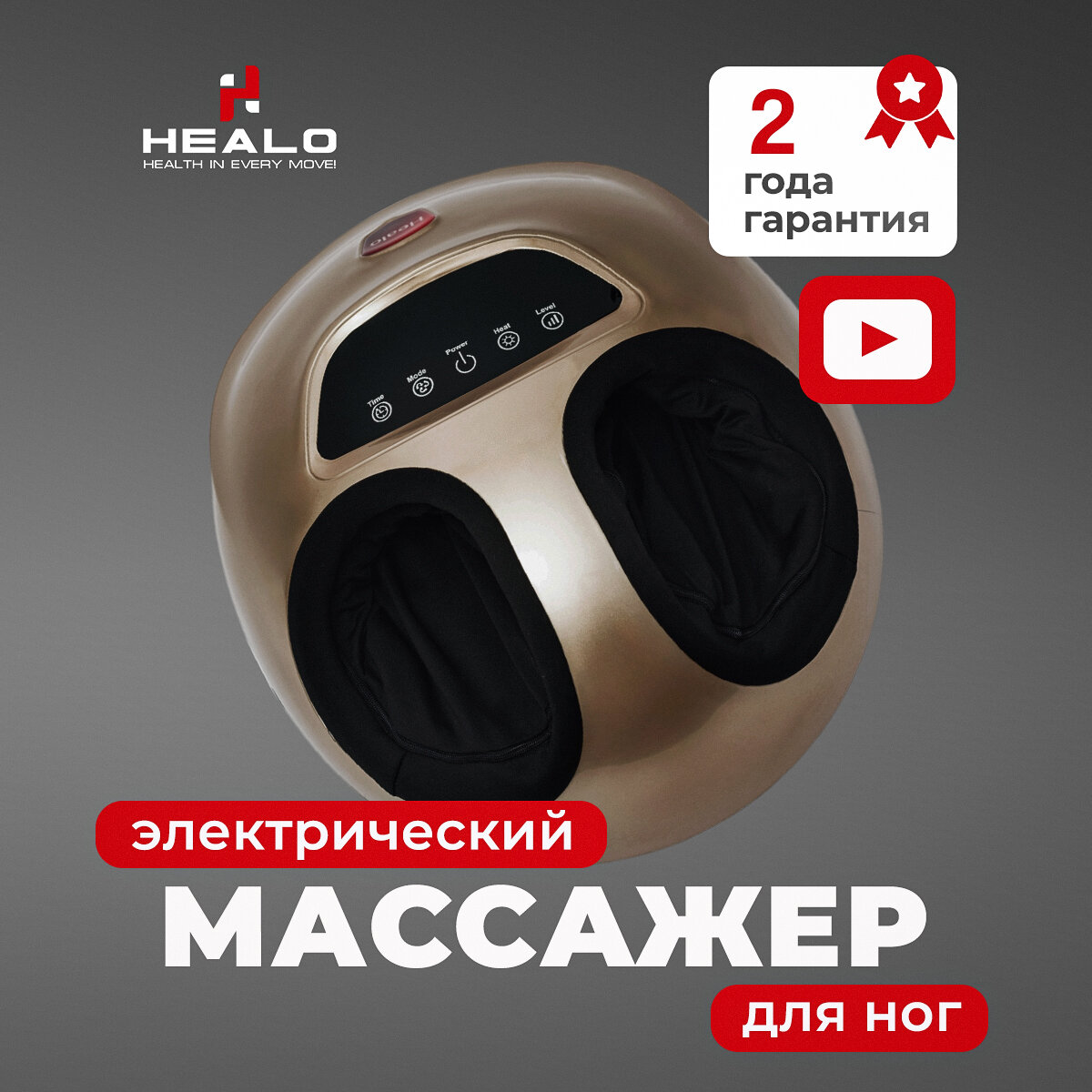 Массажер для ног HEALO с подогревом, 3 режима 3 скорости СМ2704 золотой информация: