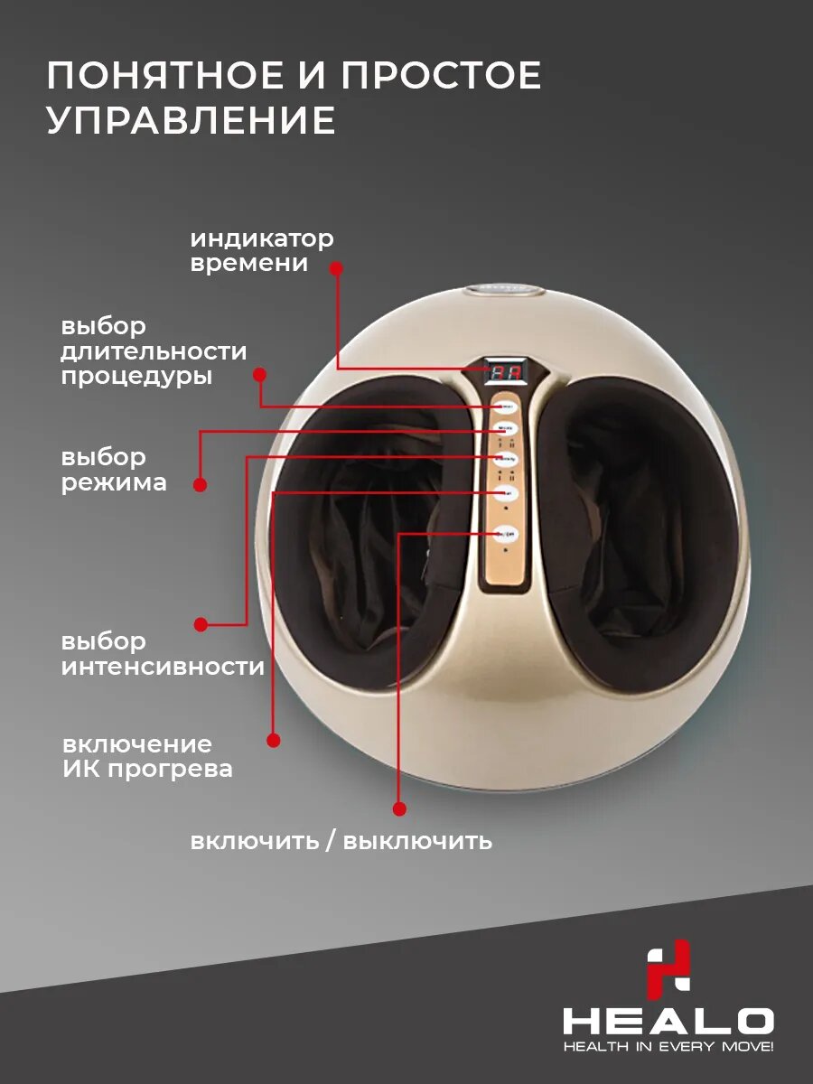 Массажер для ног HEALO с подогревом, 3 режима 3 скорости СМ2704 золотой 6 775 ₽
