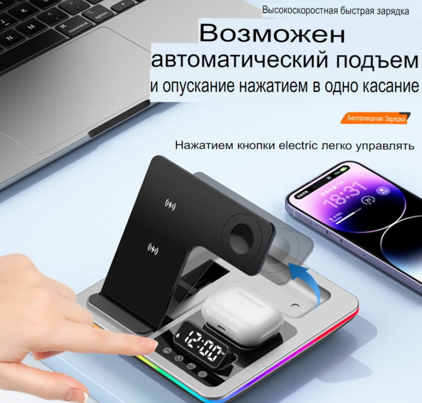 Док станция для беспроводной зарядки 5 в 1 для телефонов IPhone, Samsung, Xiaomi…, а также часов и наушников Apple. Цвет Черный 3 250 ₽