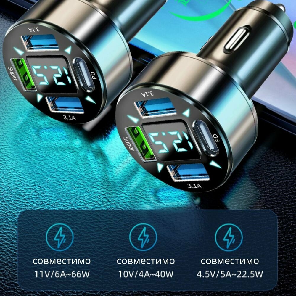 10 цен на Автомобильная зарядка быстрая USB_Super+3.1A+PD с вольтметром