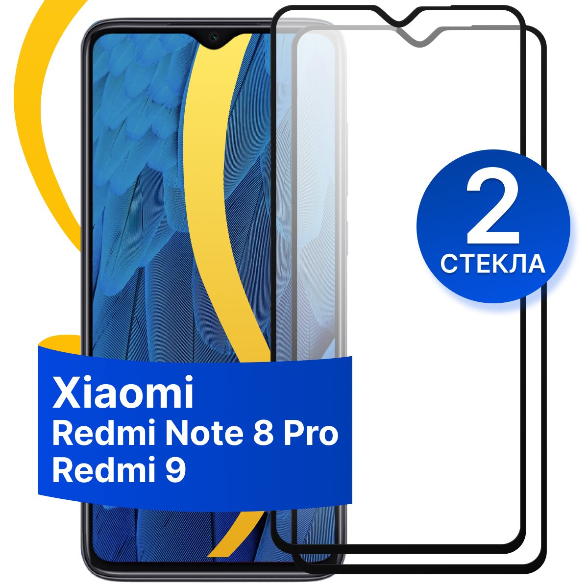 Отзывы на Комплект из 2 шт. Защитное стекло для Xiaomi Redmi Note 8 Pro, Redmi 9 / Противоударное стекло на Сяоми Редми Нот 8 Про, Редми 9