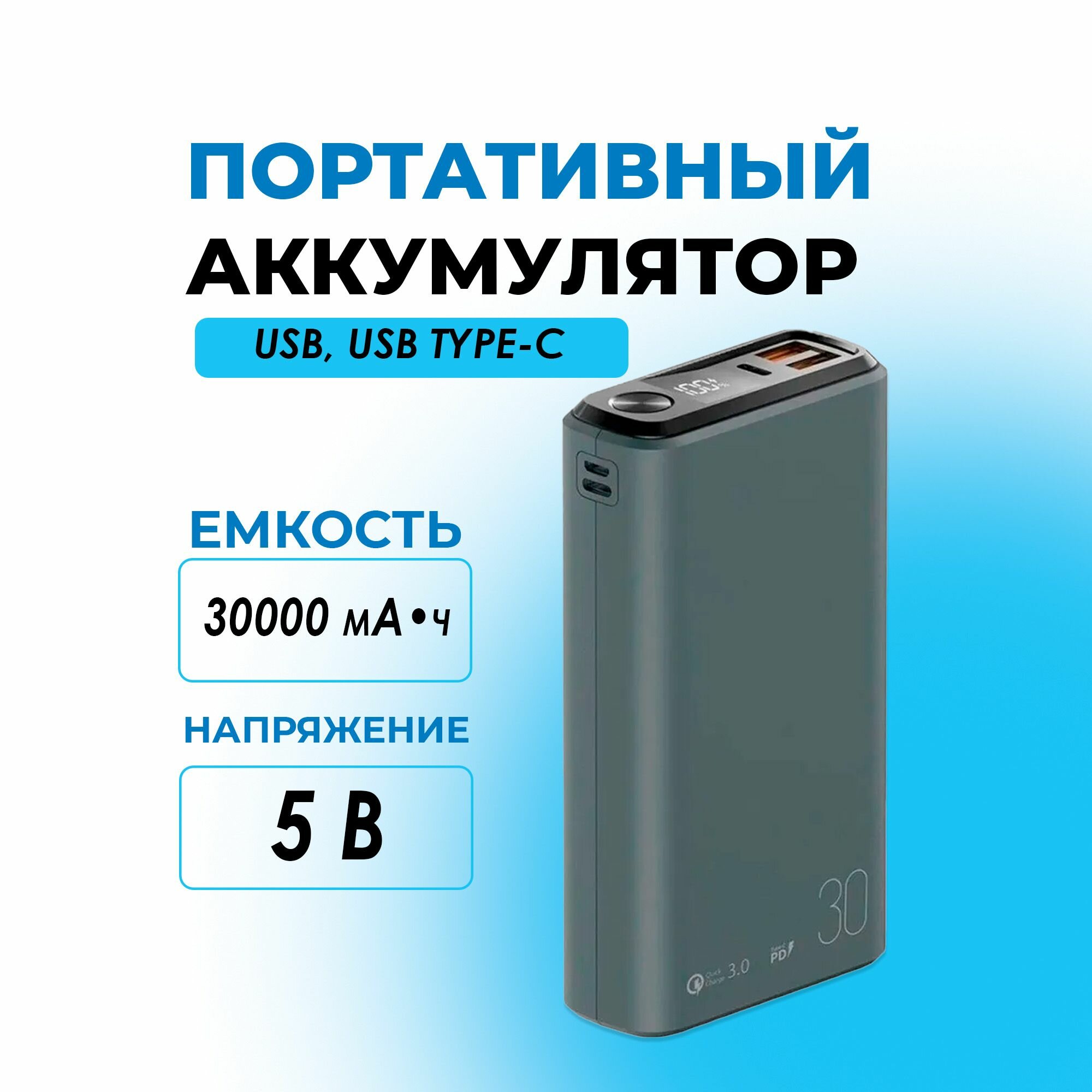 Портативный аккумулятор Powerbank 30000мА серый QS-30 OLMIO информация: