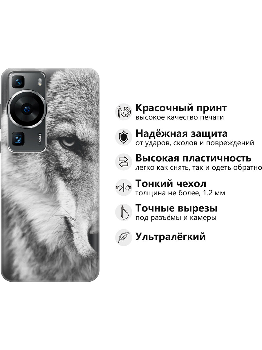 10 цен на Силиконовый чехол на Huawei P60, Хуавей П60 с принтом "Спокойный волк"