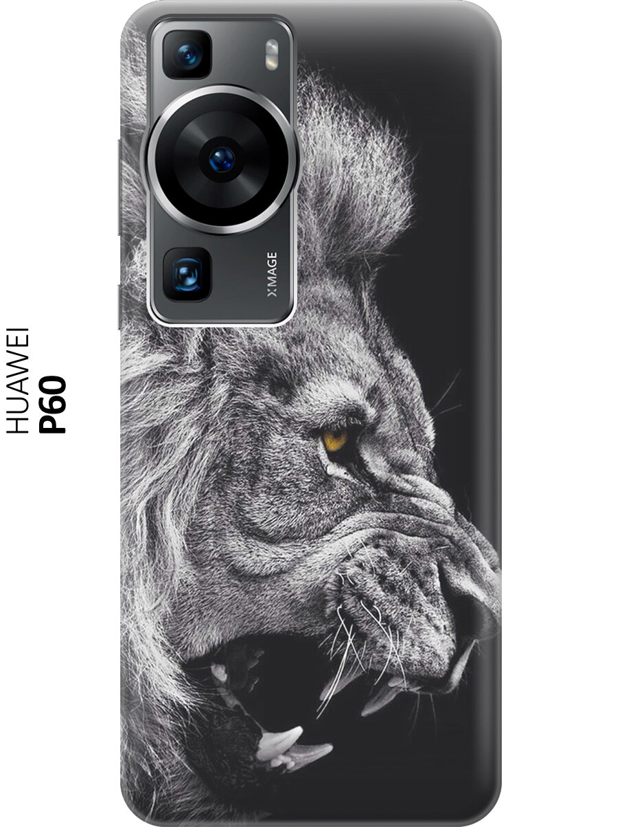 Силиконовый чехол на Huawei P60, Хуавей П60 с принтом "Морда льва" информация: