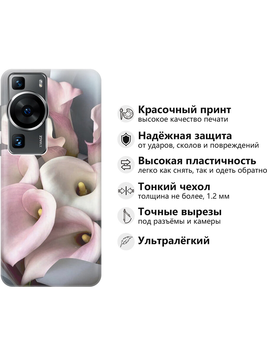 Силиконовый чехол на Huawei P60, Хуавей П60 с принтом "Розовые каллы" информация:
