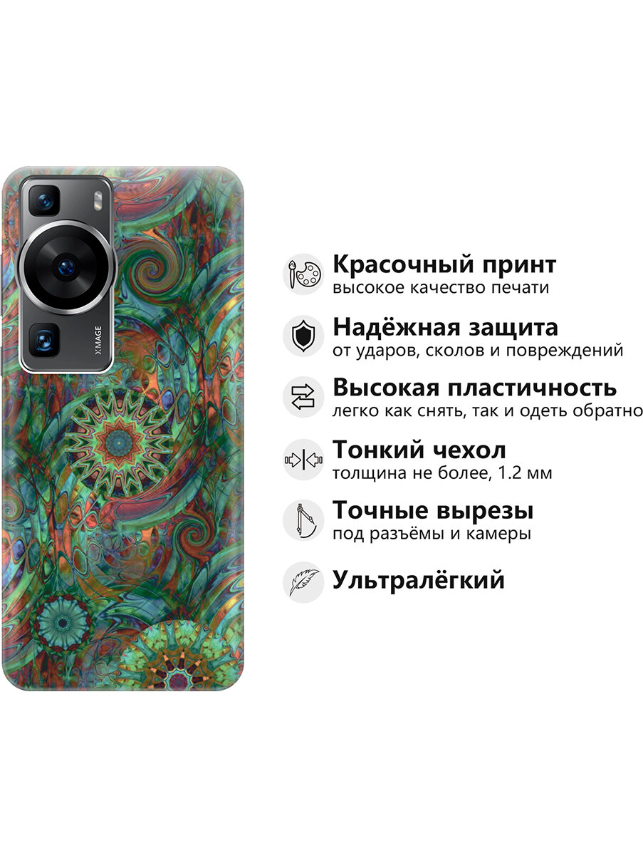 Отзывы на Силиконовый чехол на Huawei P60, Хуавей П60 с принтом "Зеленый колейдоскоп"