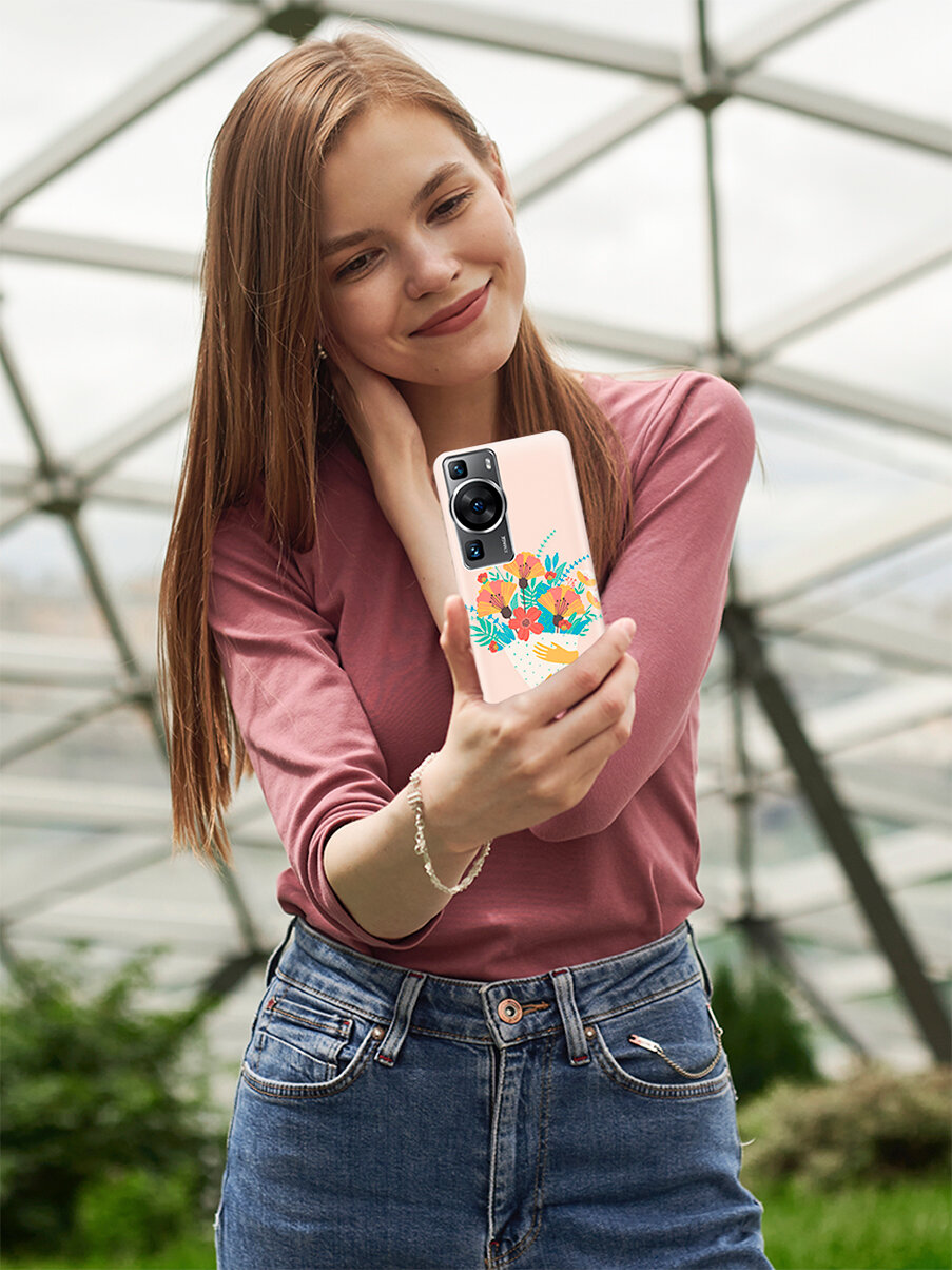 10 цен на Силиконовый чехол на Huawei P60, Хуавей П60 с принтом "Букет на розовом"