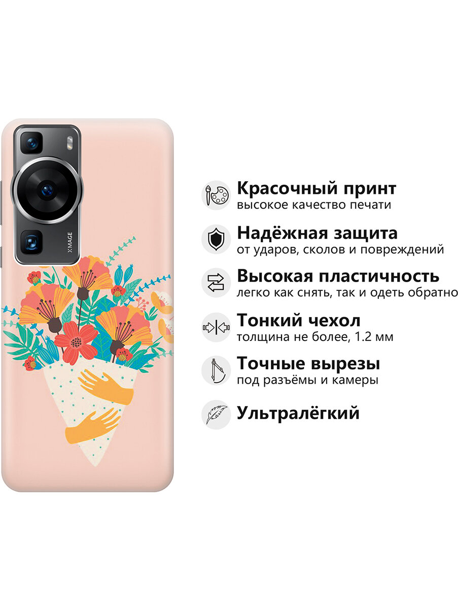 Силиконовый чехол на Huawei P60, Хуавей П60 с принтом "Букет на розовом" информация: