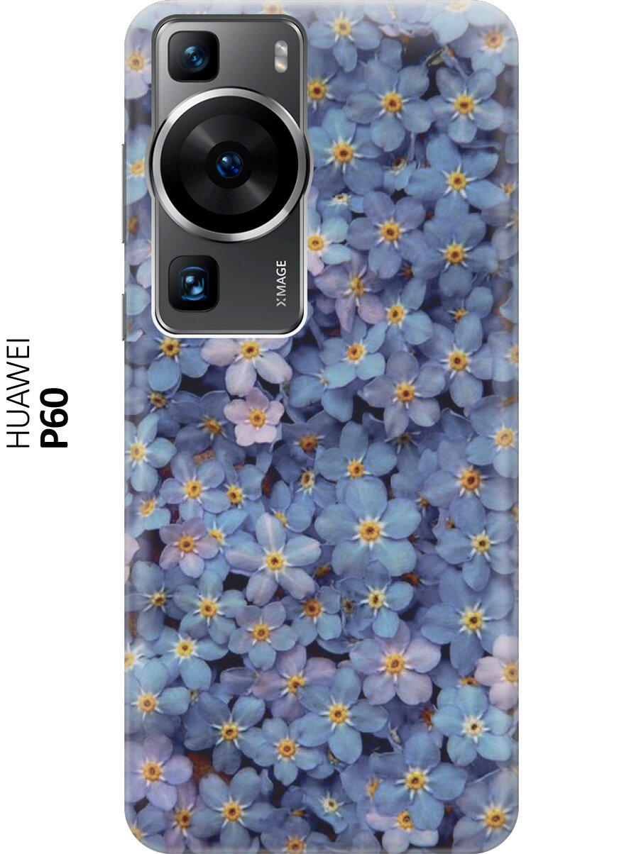 10 цен на Силиконовый чехол на Huawei P60, Хуавей П60 с принтом "Голубые фиалки"