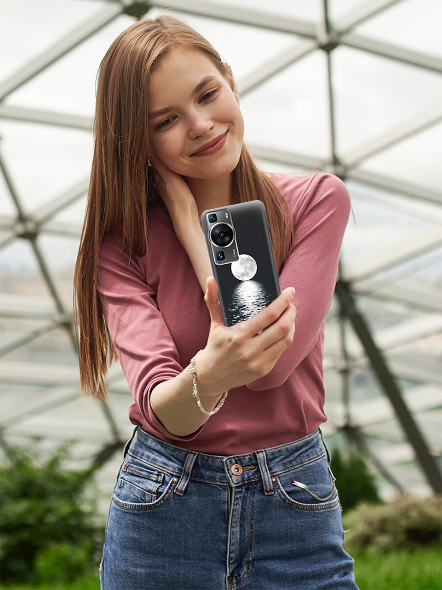 10 цен на Силиконовый чехол на Huawei P60, Хуавей П60 с принтом "Луна над морем"