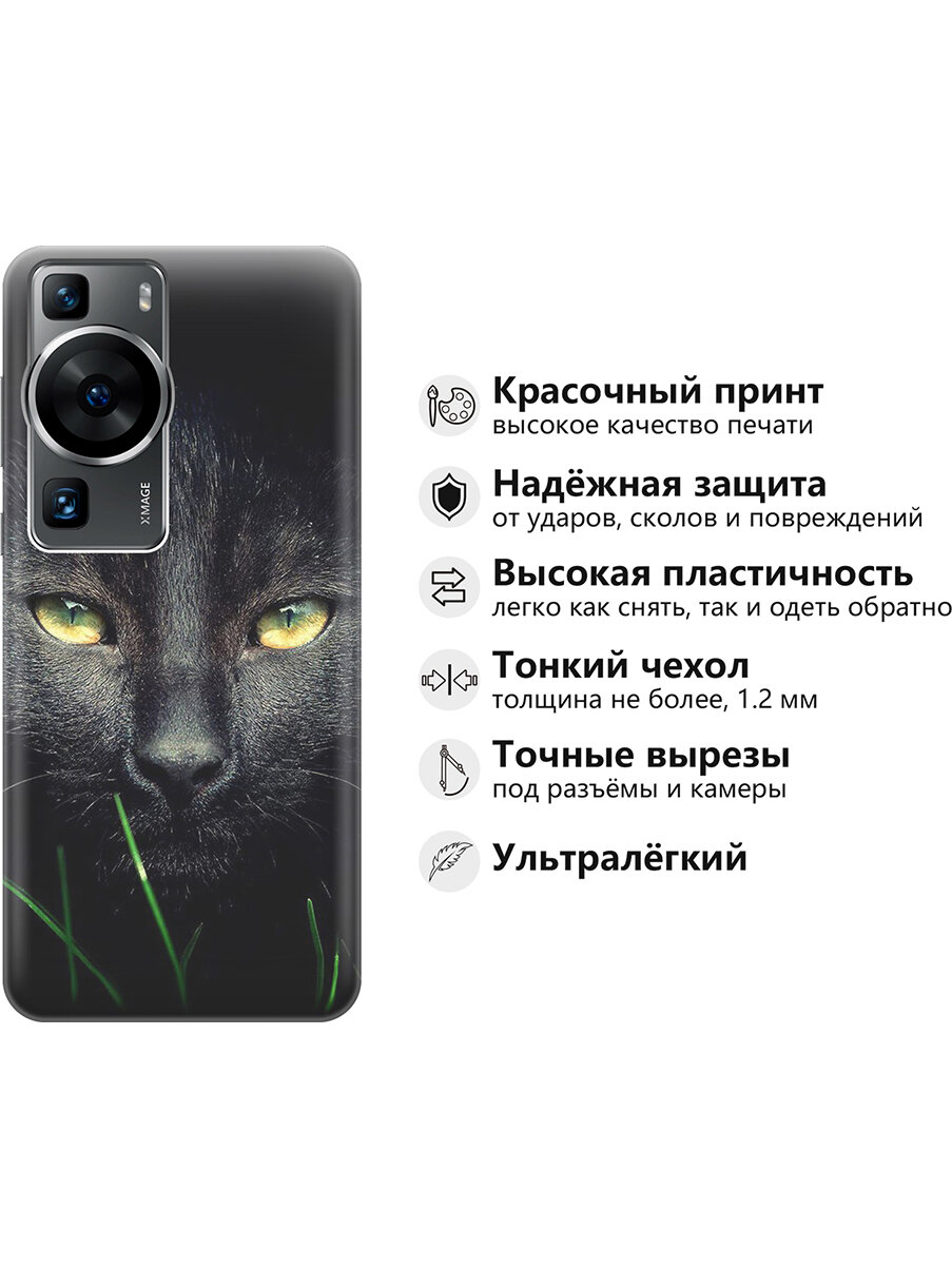 10 цен на Силиконовый чехол на Huawei P60, Хуавей П60 с принтом "Кошка в темноте"