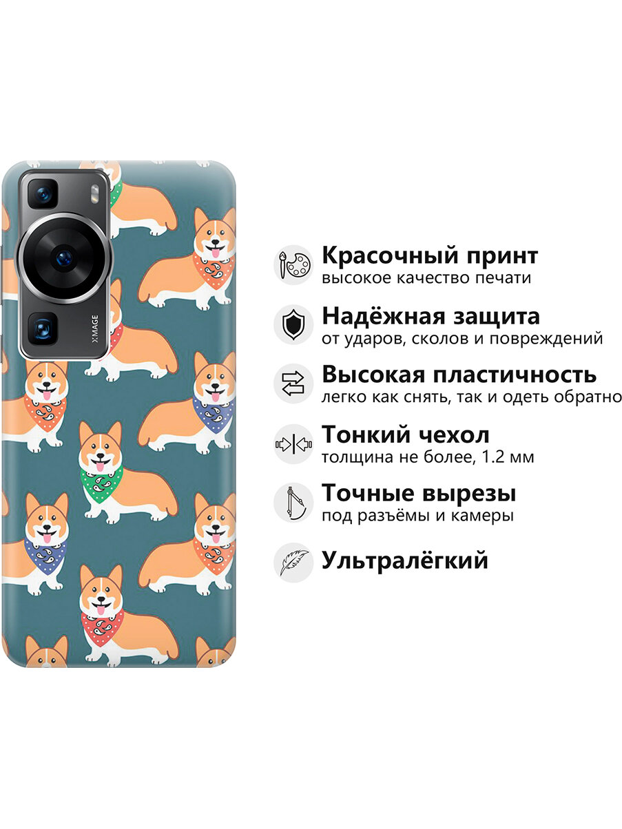 Силиконовый чехол на Huawei P60, Хуавей П60 с принтом "Корги" 459 ₽