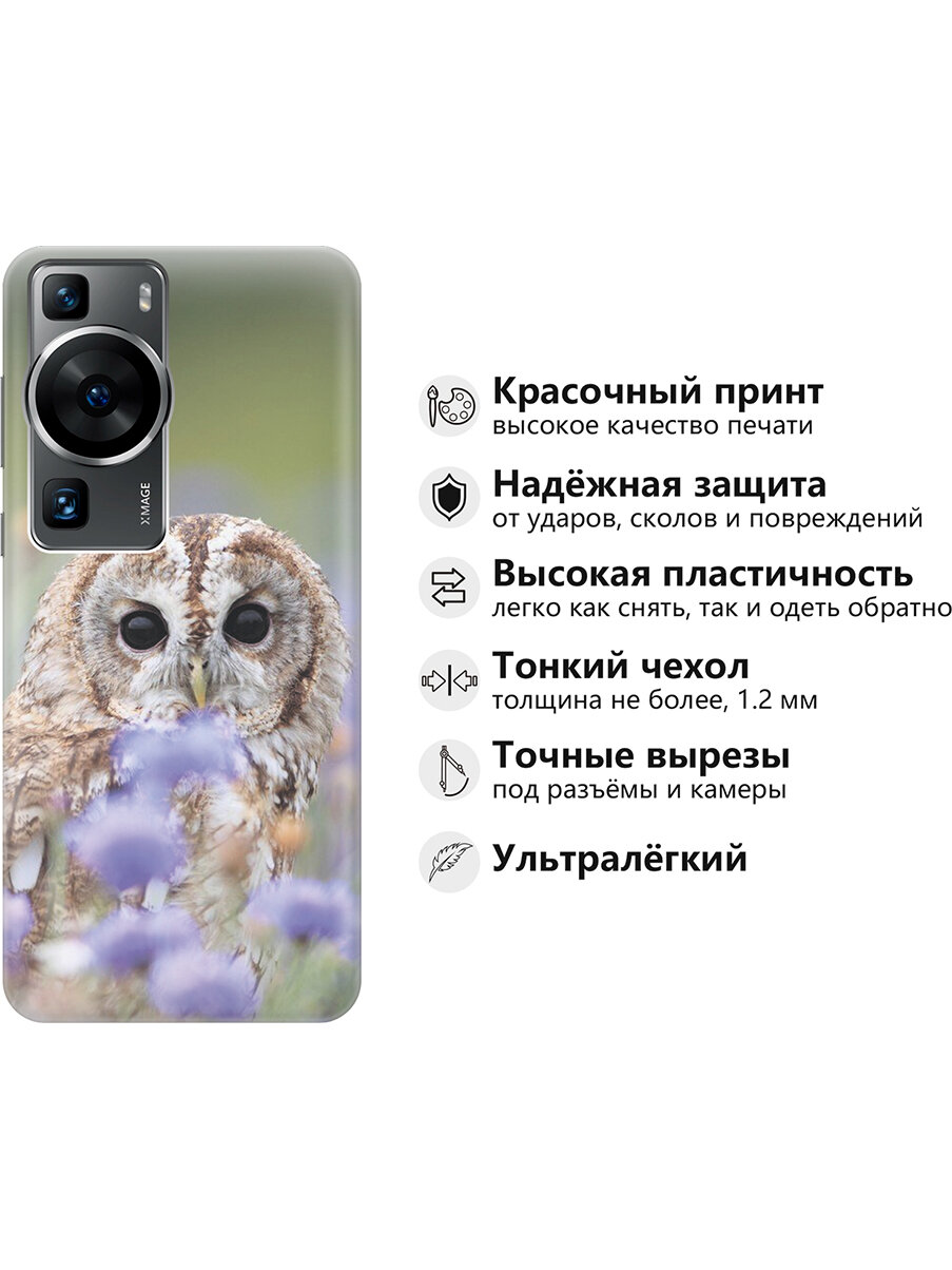 Силиконовый чехол на Huawei P60, Хуавей П60 с принтом "Сова и васильки" информация: