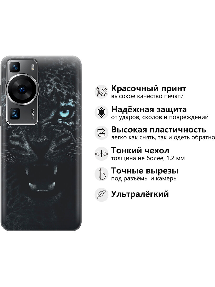 Отзывы на Силиконовый чехол на Huawei P60, Хуавей П60 с принтом "Голубоглазая пантера"
