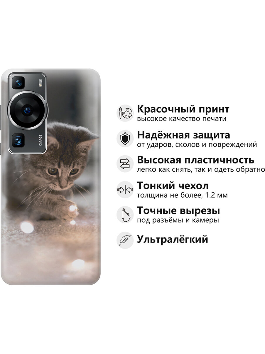 10 цен на Силиконовый чехол на Huawei P60, Хуавей П60 с принтом "Котенок и свет"