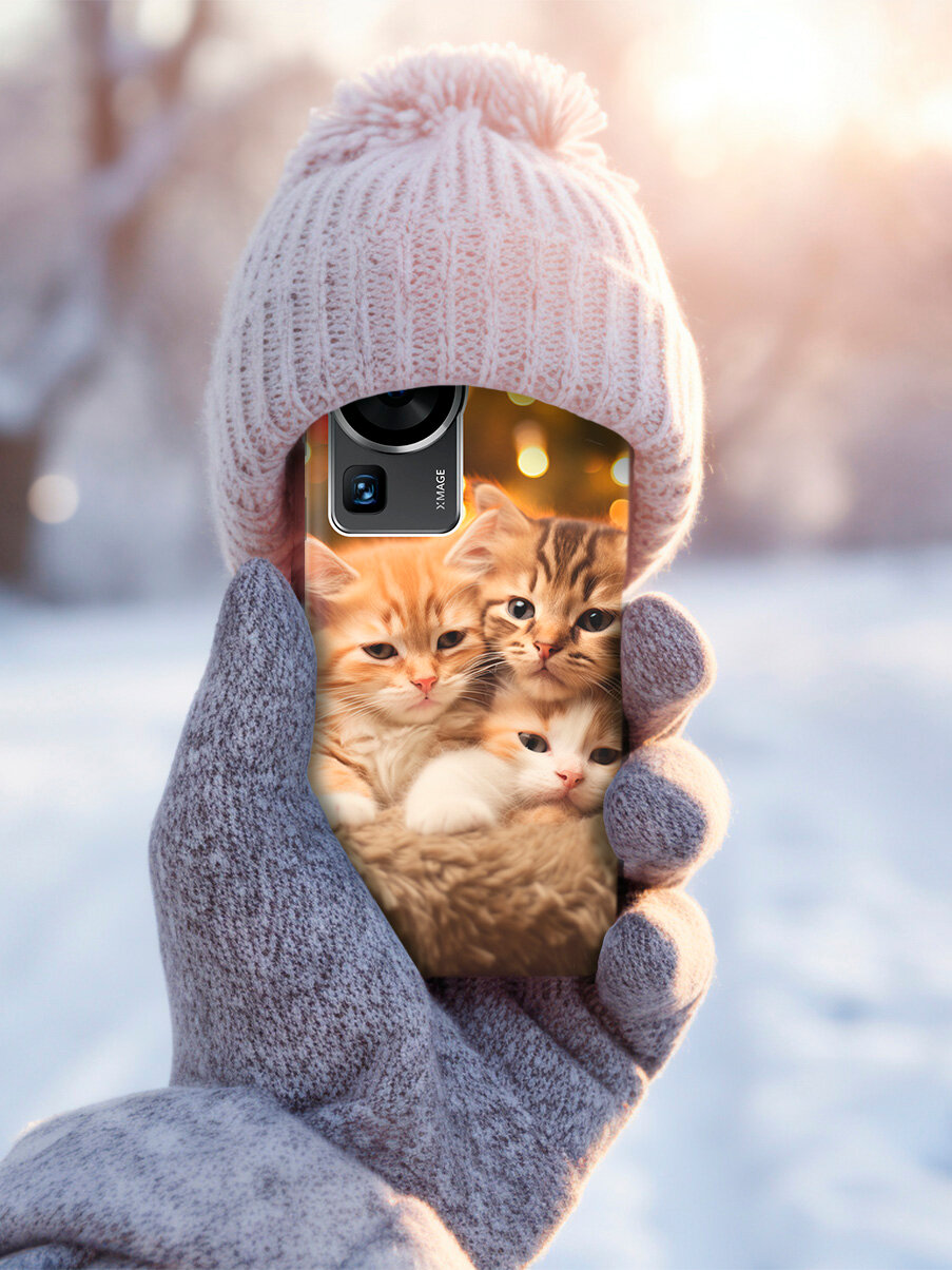 Силиконовый чехол на Huawei P60 / Хуавей П60 с рисунком "Котята и Новый Год" информация: