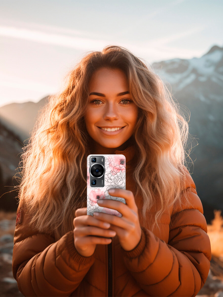 10 цен на Силиконовый чехол на Huawei P60 / Хуавей П60 с рисунком "Нежно-розовые цветы"