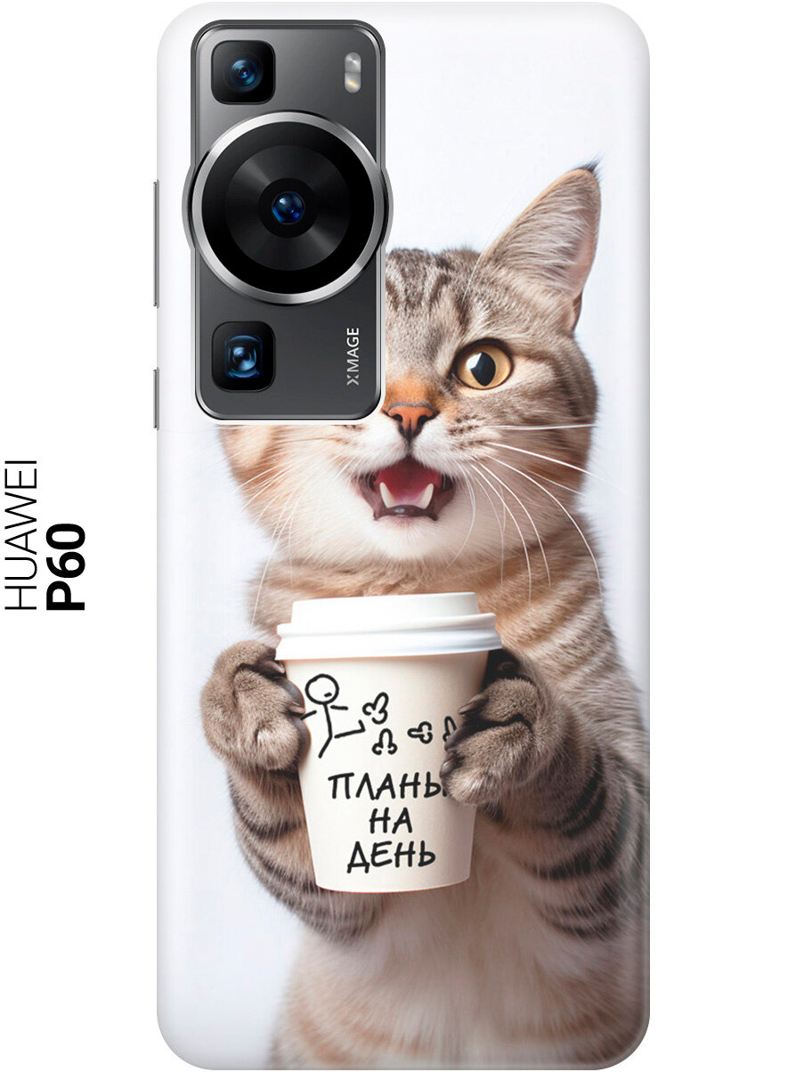 10 цен на Силиконовый чехол на Huawei P60 / Хуавей П60 с рисунком "Котик и его планы"