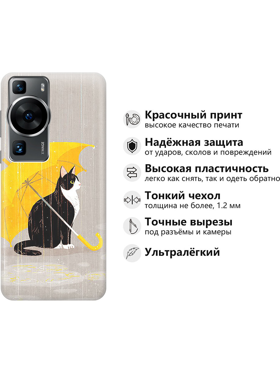 Отзывы на Силиконовый чехол на Huawei P60, Хуавей П60 с принтом "Кот с желтым зонтом"