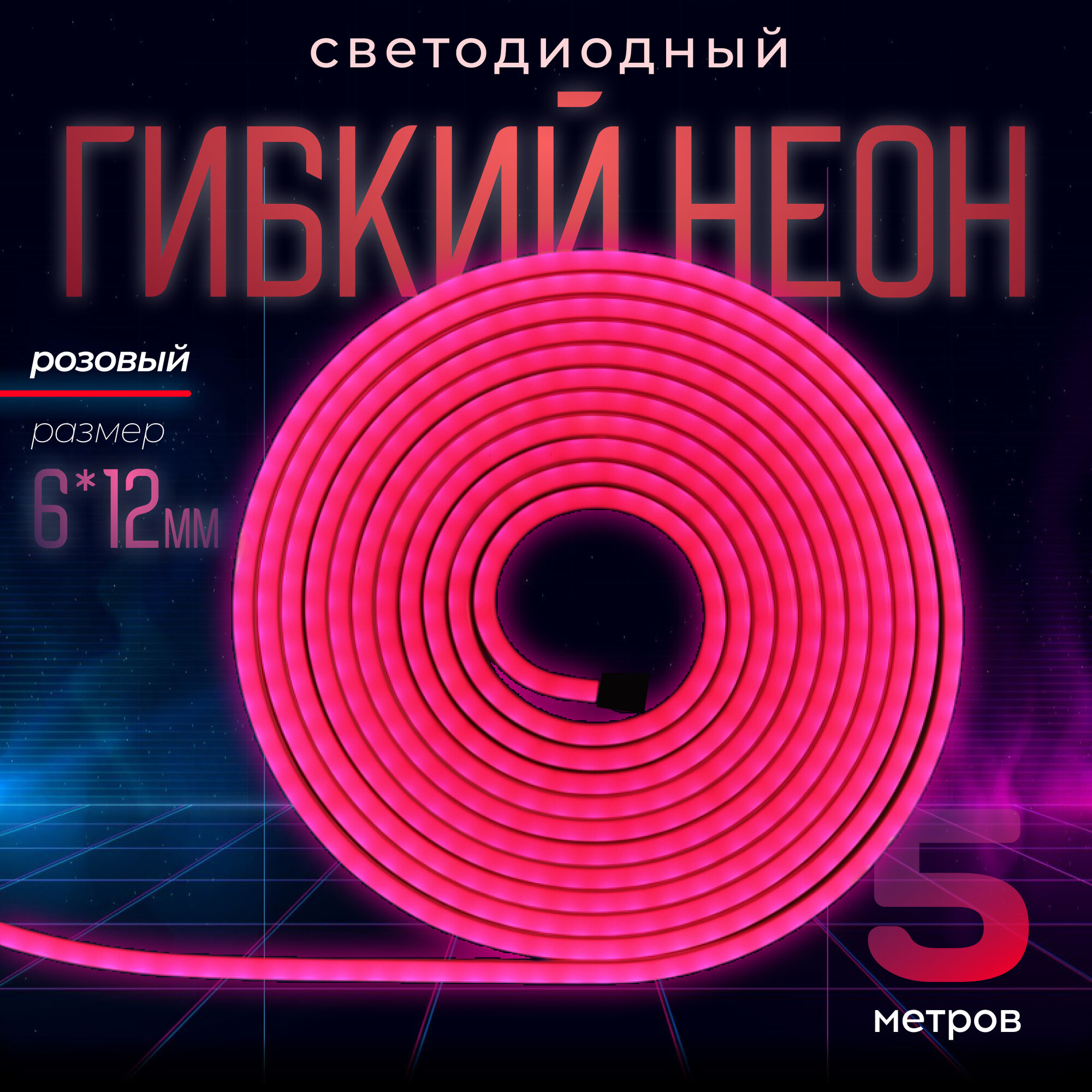 10 цен на Светодиодный гибкий неон 5 метров 12В, размер 6х12мм, цвет розовый