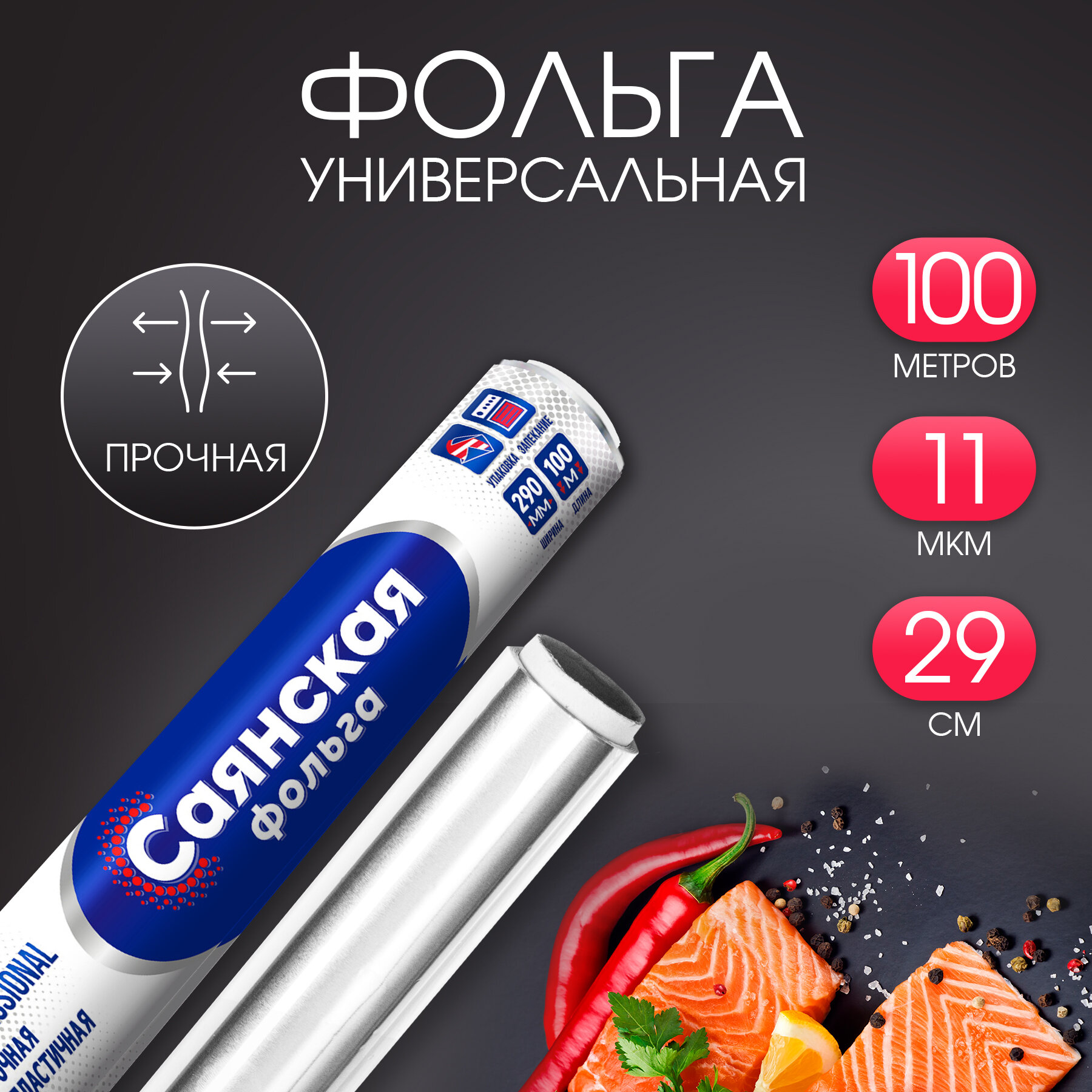 Фольга пищевая прочная Саянская для запекания и выпечки 100 м, 11 мкм, фольга для запекания информация:
