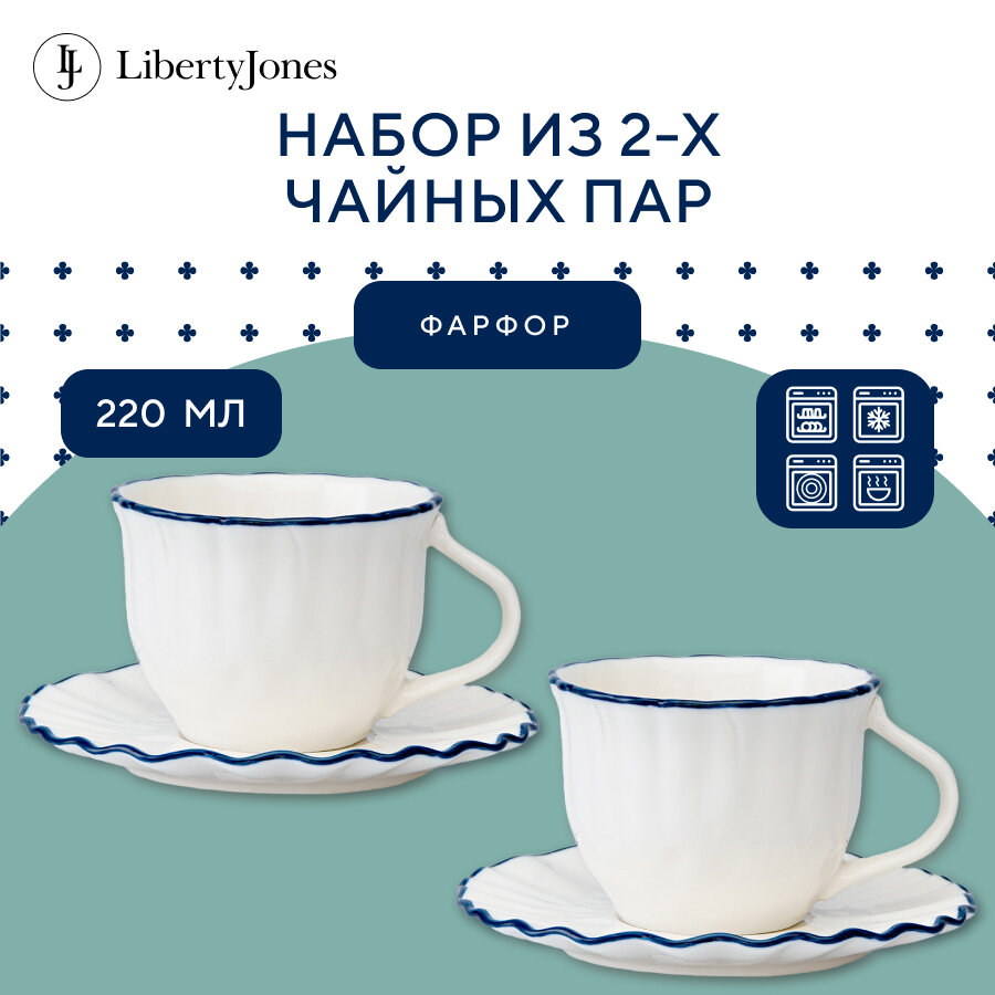 Чайная пара для чая Santorini 220 мл фарфоровая чашка с блюдцем в наборе из 2 шт Liberty Jones LJ0000192 информация: