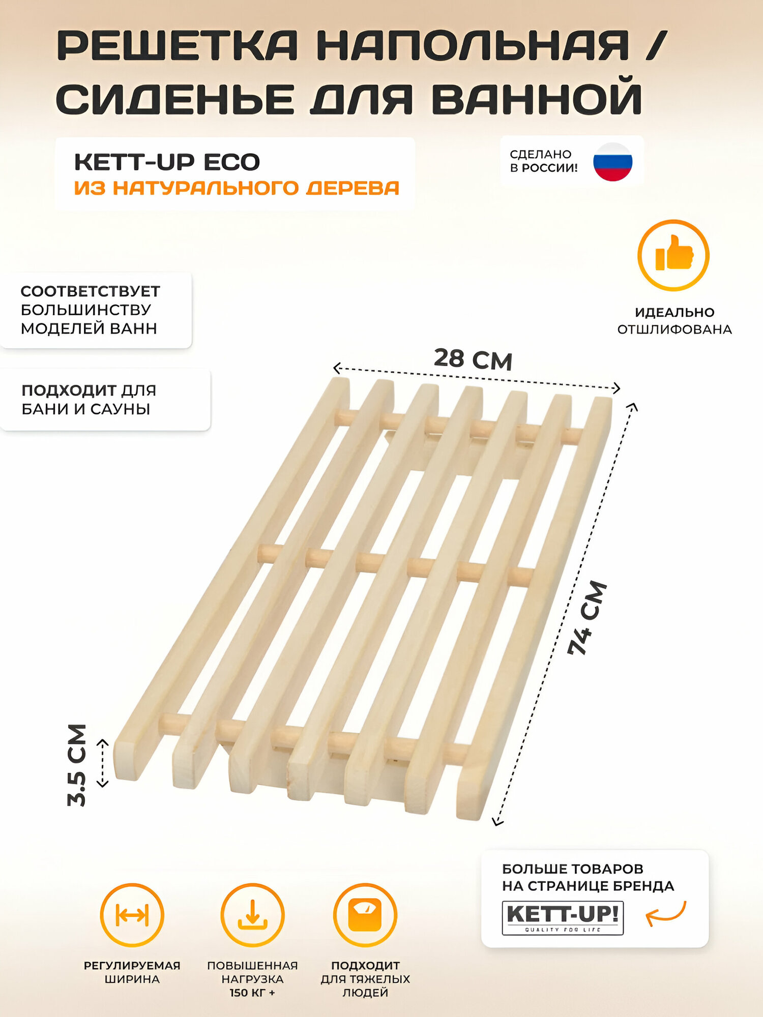 Решетка сиденье KETT-UP ECO для ванной деревянная, 74х28 см информация:
