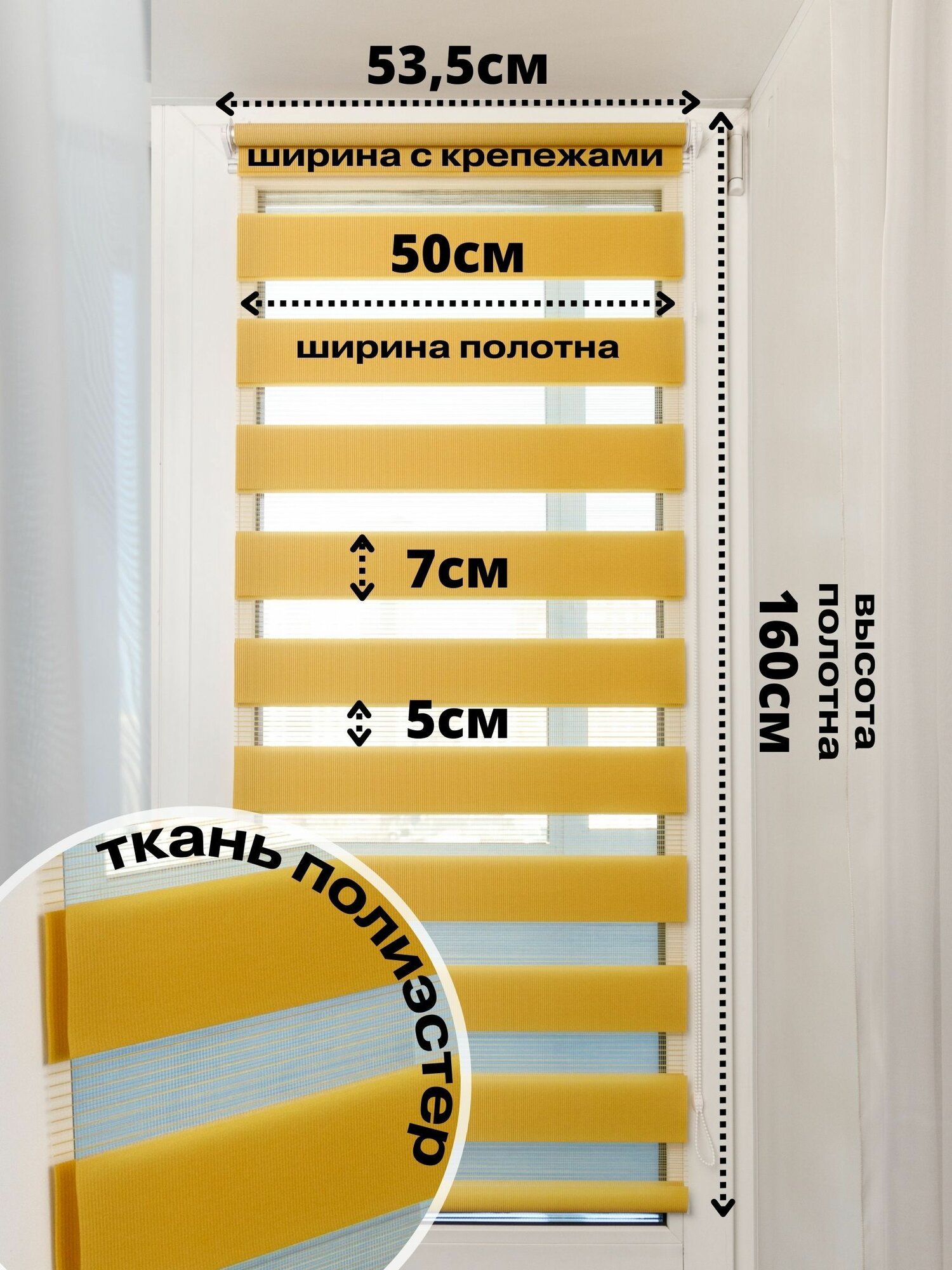 Рулонные шторы день ночь 50х160 см, горчичные жалюзи на окна информация: