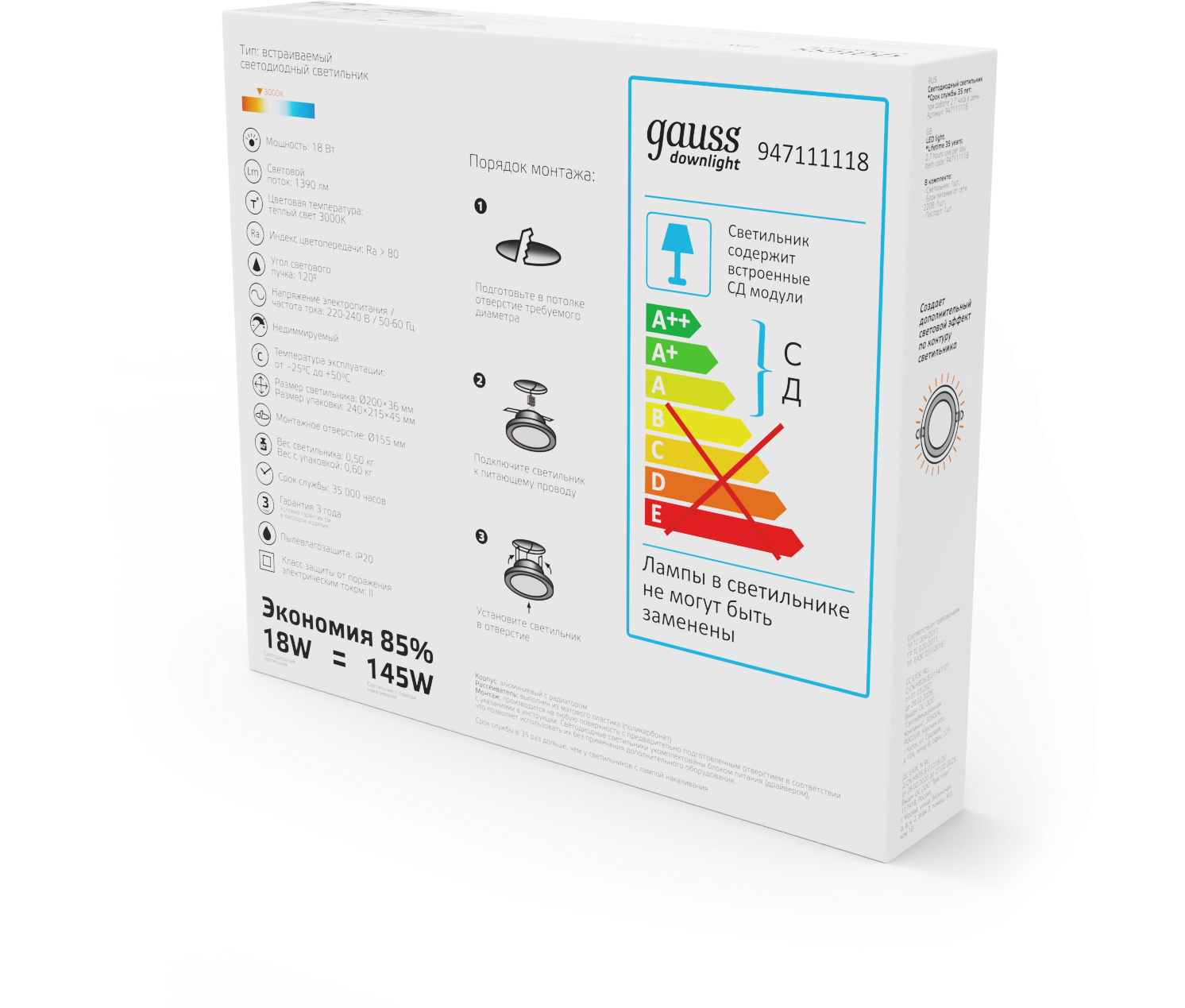 Светильник Gauss 948111118 18Вт 3000K цв.св.:белый теплый белый 2 089 ₽