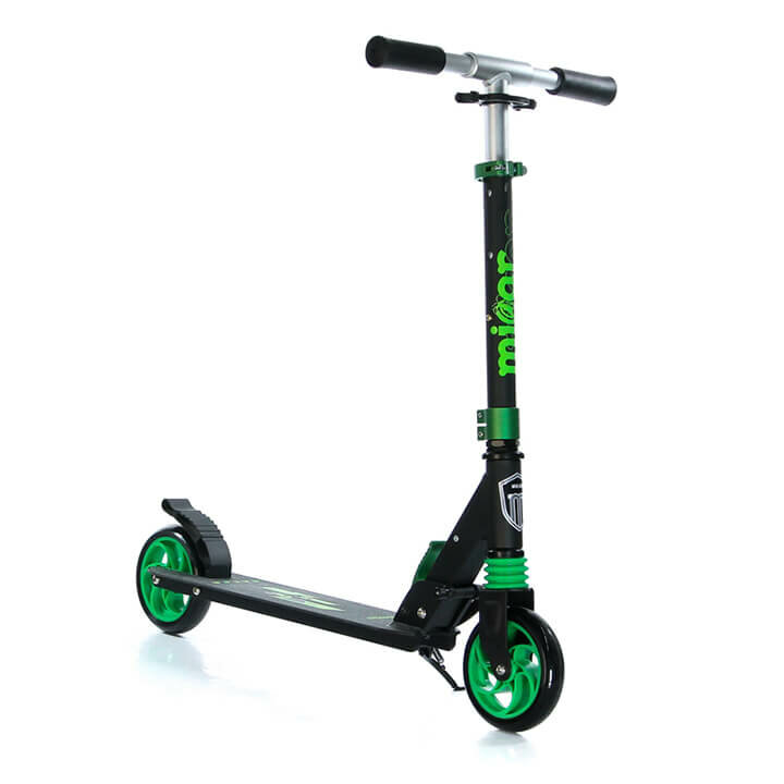 Самокат MICAR Racer 145 с передним амортизатором и с колёсами 145 мм чёрно-зелёный информация:
