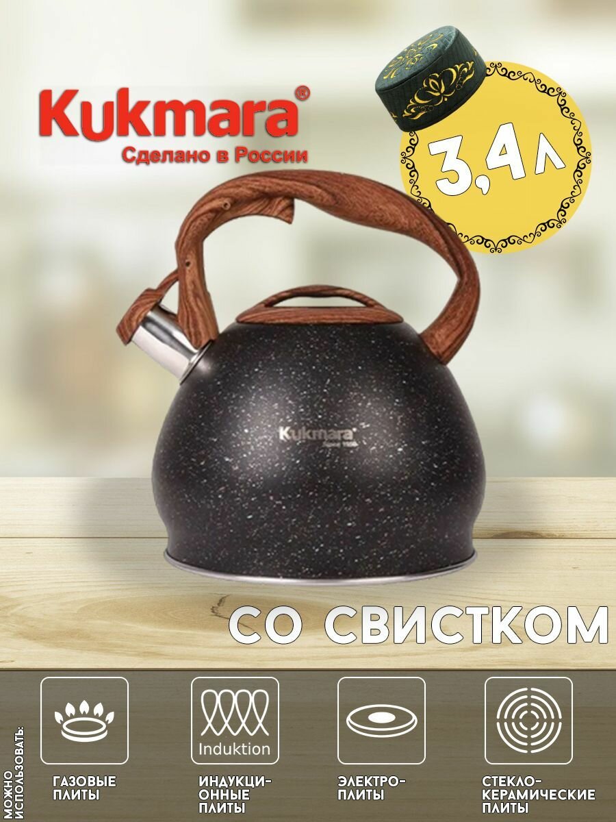 Чайник со свистком из нержавеющей стали 3,4л черный мрамор "Black" kuk-07/3103555 (12/1) . информация: