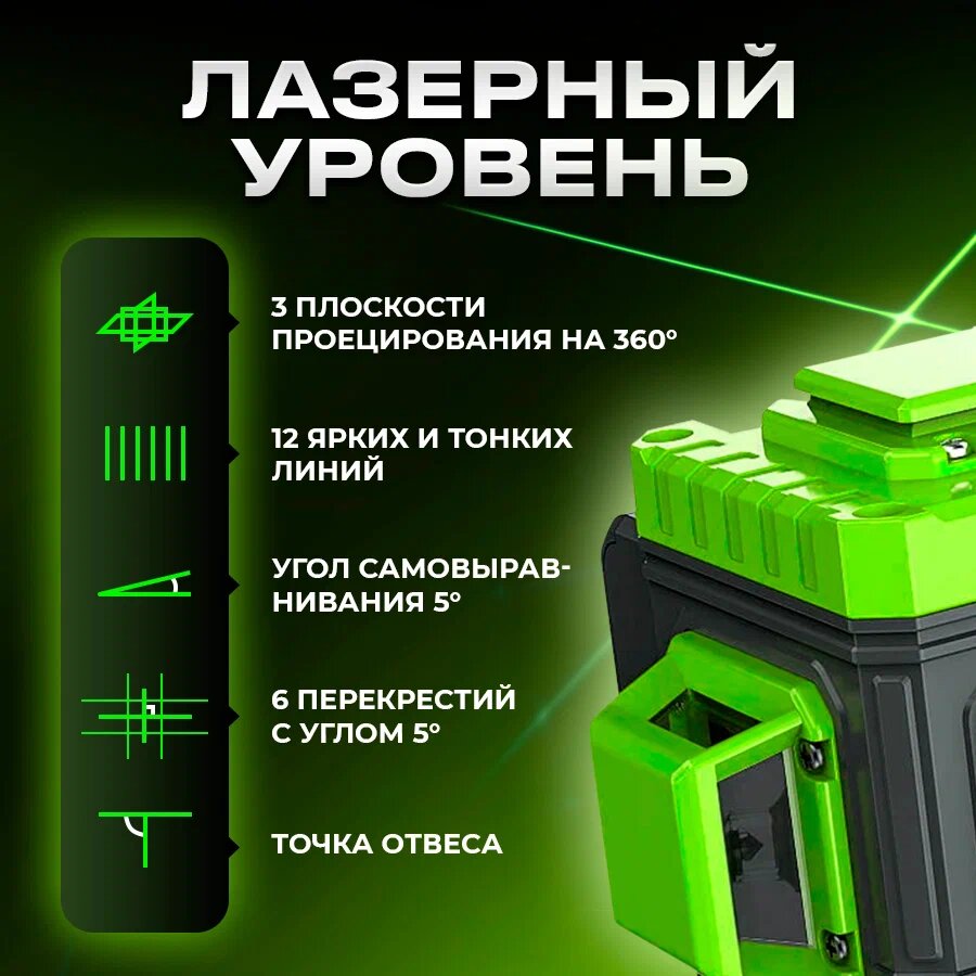Профессиональный лазерный уровень Enstroll, нивелир строительный 12 линий, 2 АКБ информация: