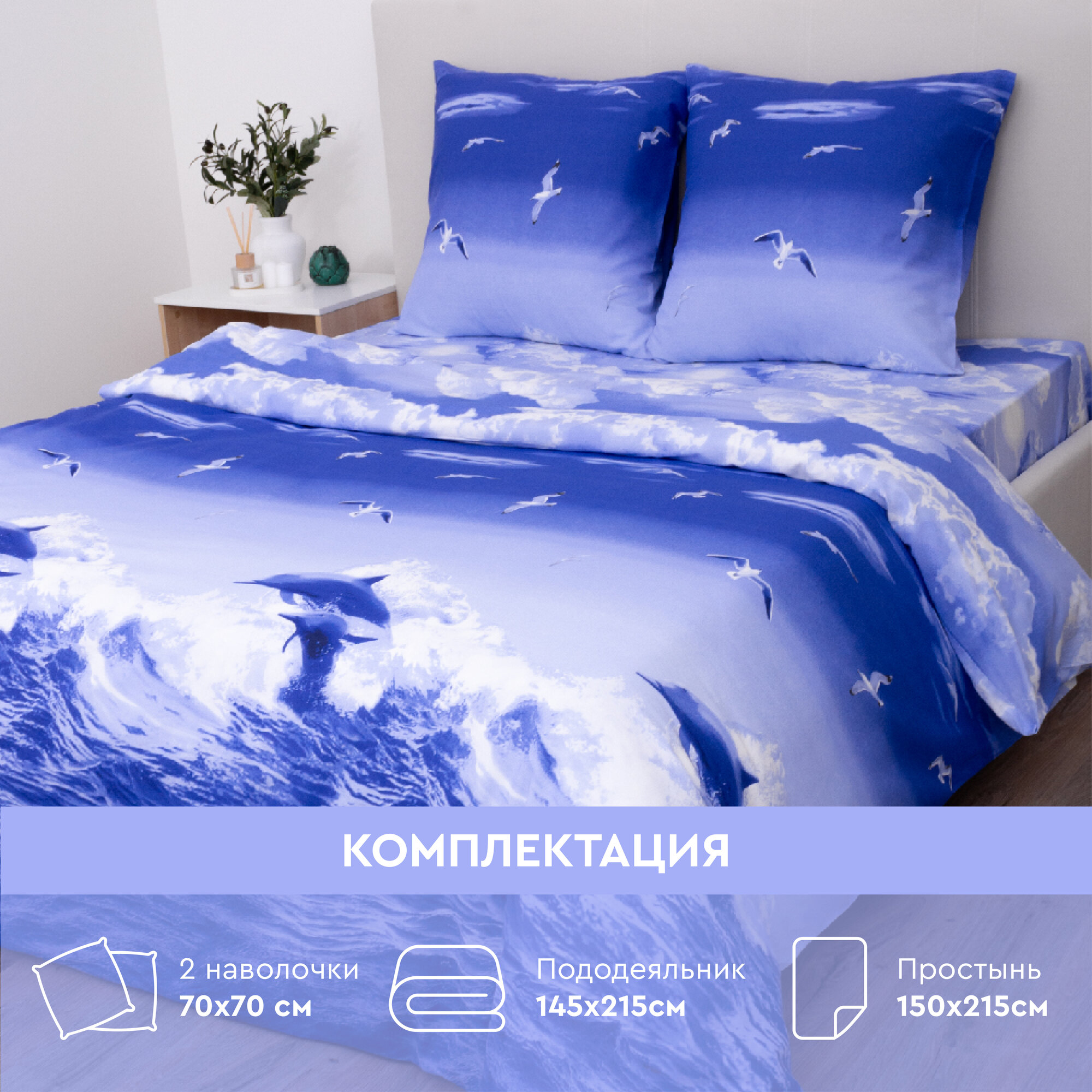 Постельное белье Василиса 1,5-спальное, Бязь, наволочки 70х70 см, Океан информация: