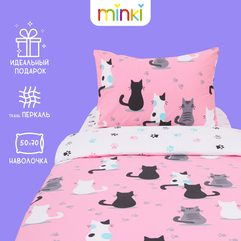 Постельное белье для детей Minki, 1,5-спальное, Перкаль, 50х70, Мур-Мур информация: