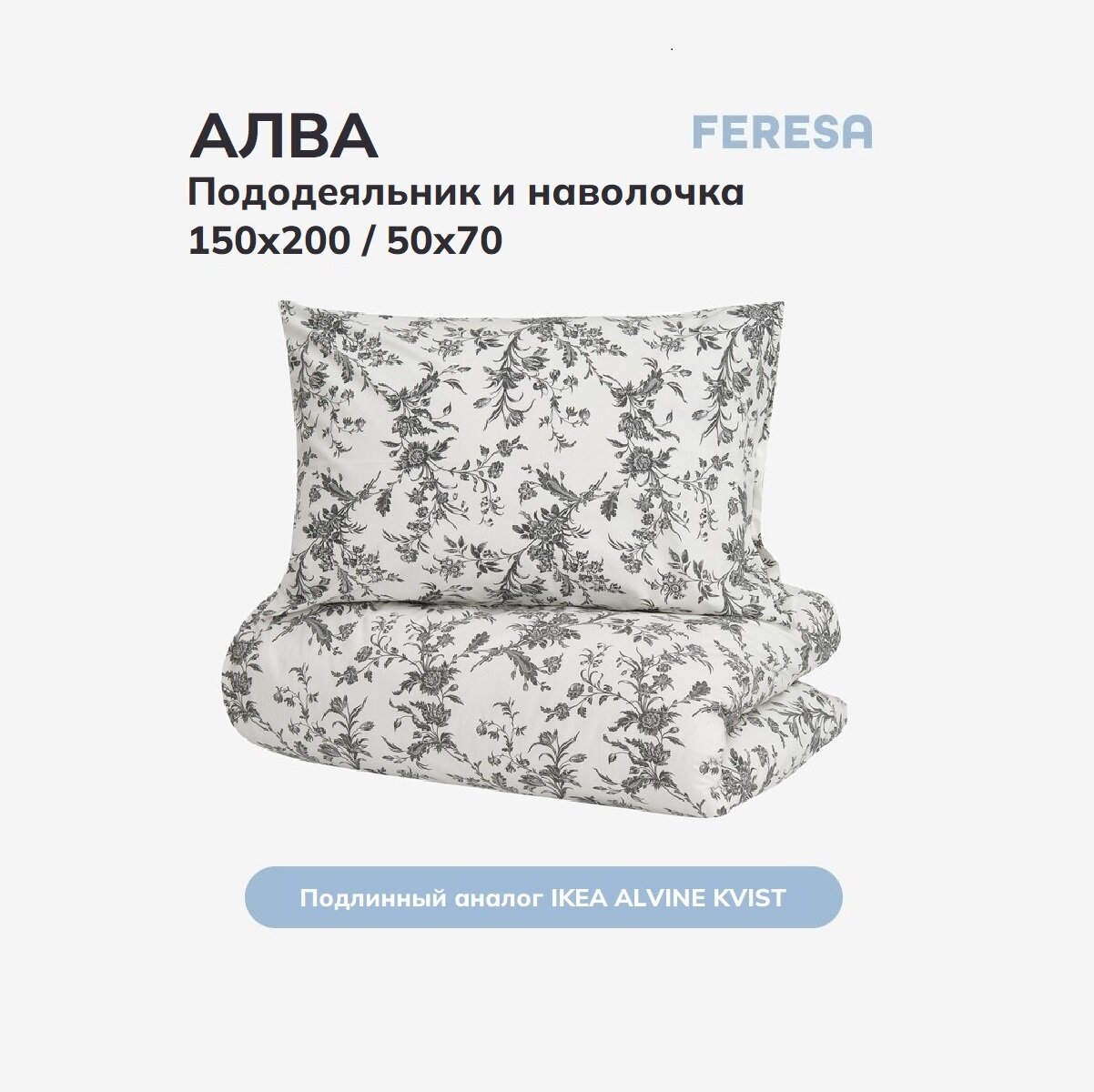 Постельное белье 1 5 спальное Feresa алва/ALVINE KVIST, пододеяльник 150х200, наволочки 50x70 (1 шт), ikea постельное белье информация: