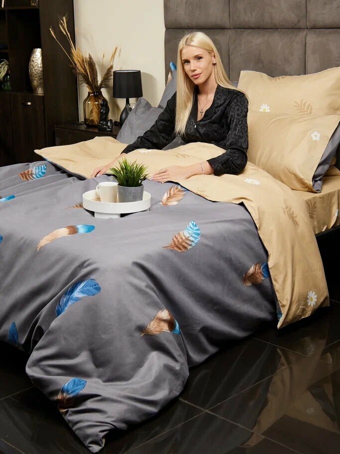 Комплект постельного белья Сатин-люкс 1,5-спальный, пододеяльник (на молнии) 150х215 см.-1шт. Простыня (на резинке по кругу) 90х200(+25) см.-1шт. Наволочки (без ушек) 70х70 см.-2шт. серый, бежевый 3 450 ₽