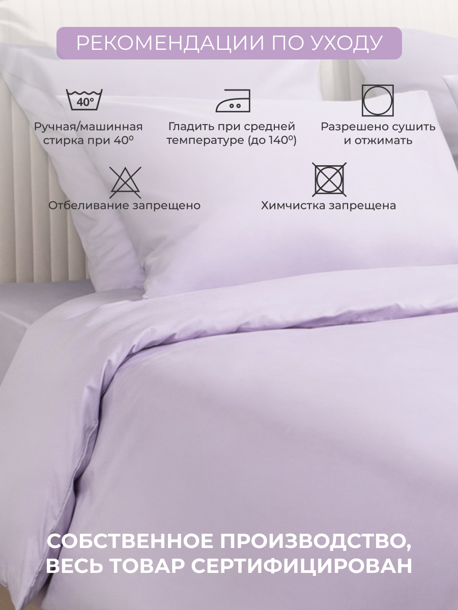 Простынь на резинке Ecotex "Моноспейс", сатин - 100% хлопок, 140х200х23 сиреневый 1 580 ₽