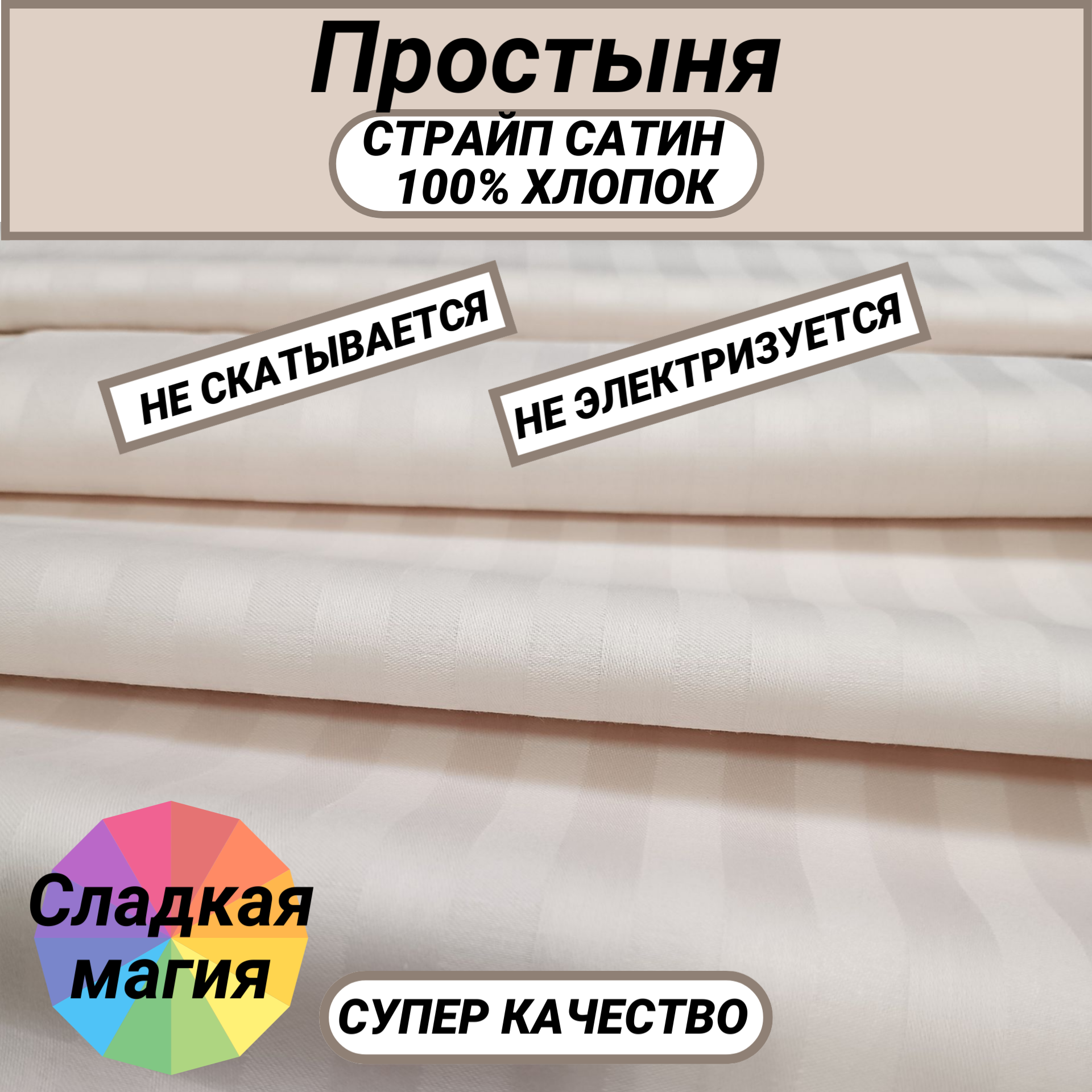 Простыня евро макси (235х260) страйп сатин бежевый "Слоновая кость" СПАЛЕНКА78, хлопок 100%, полоса 1х1 2 094 ₽