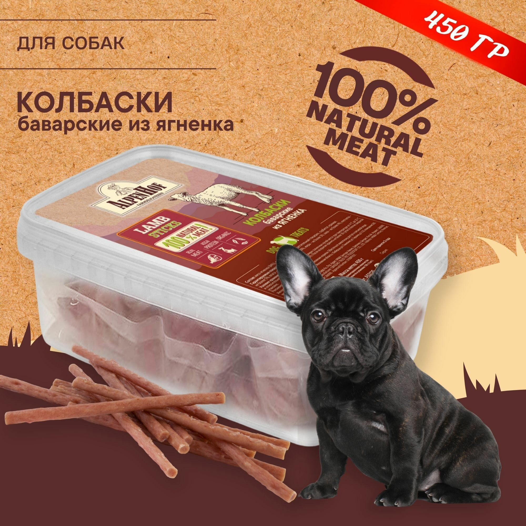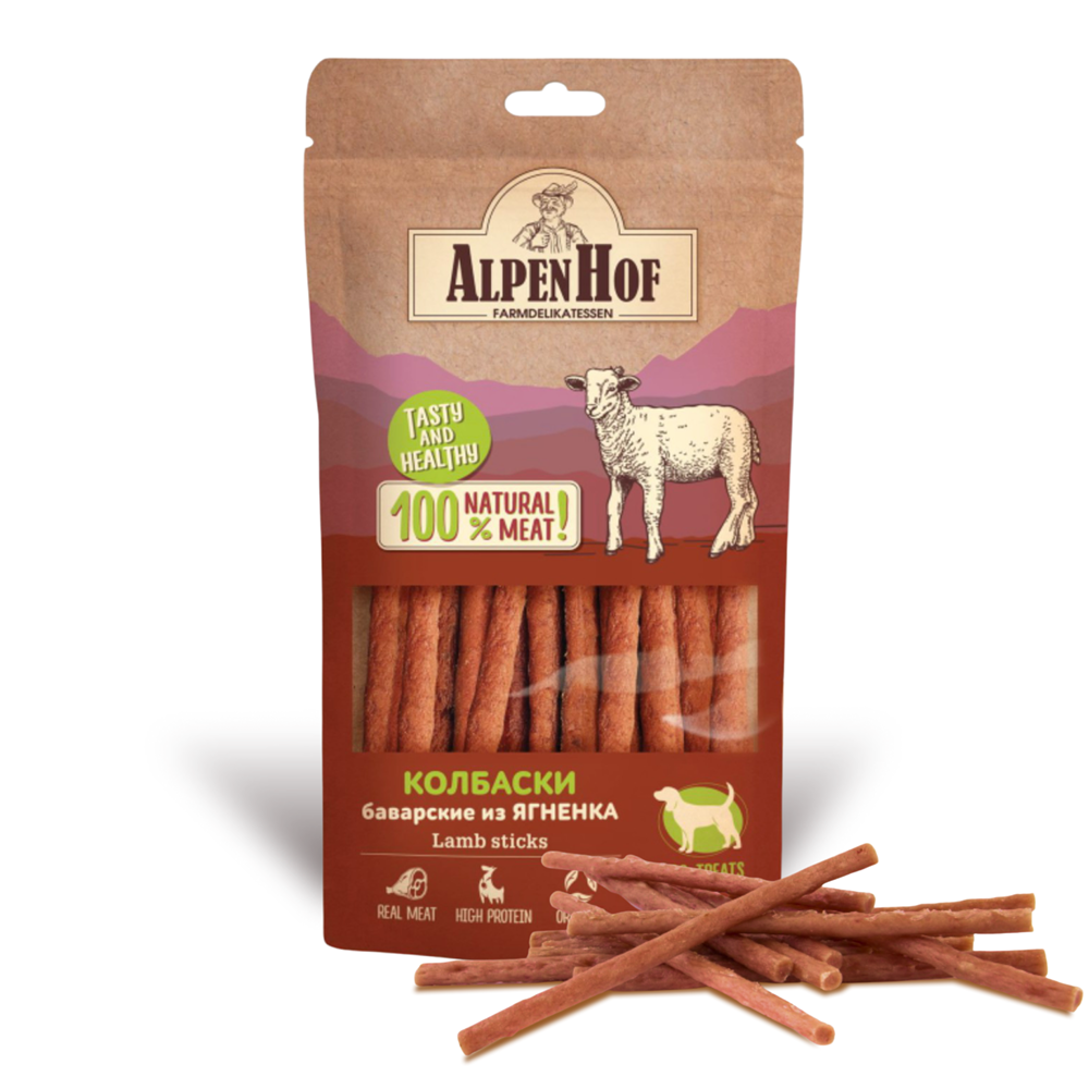 10 цен на AlpenHof лакомство для собак Колбаски баварские из ягненка для собак АльпенХоф, 450 г.