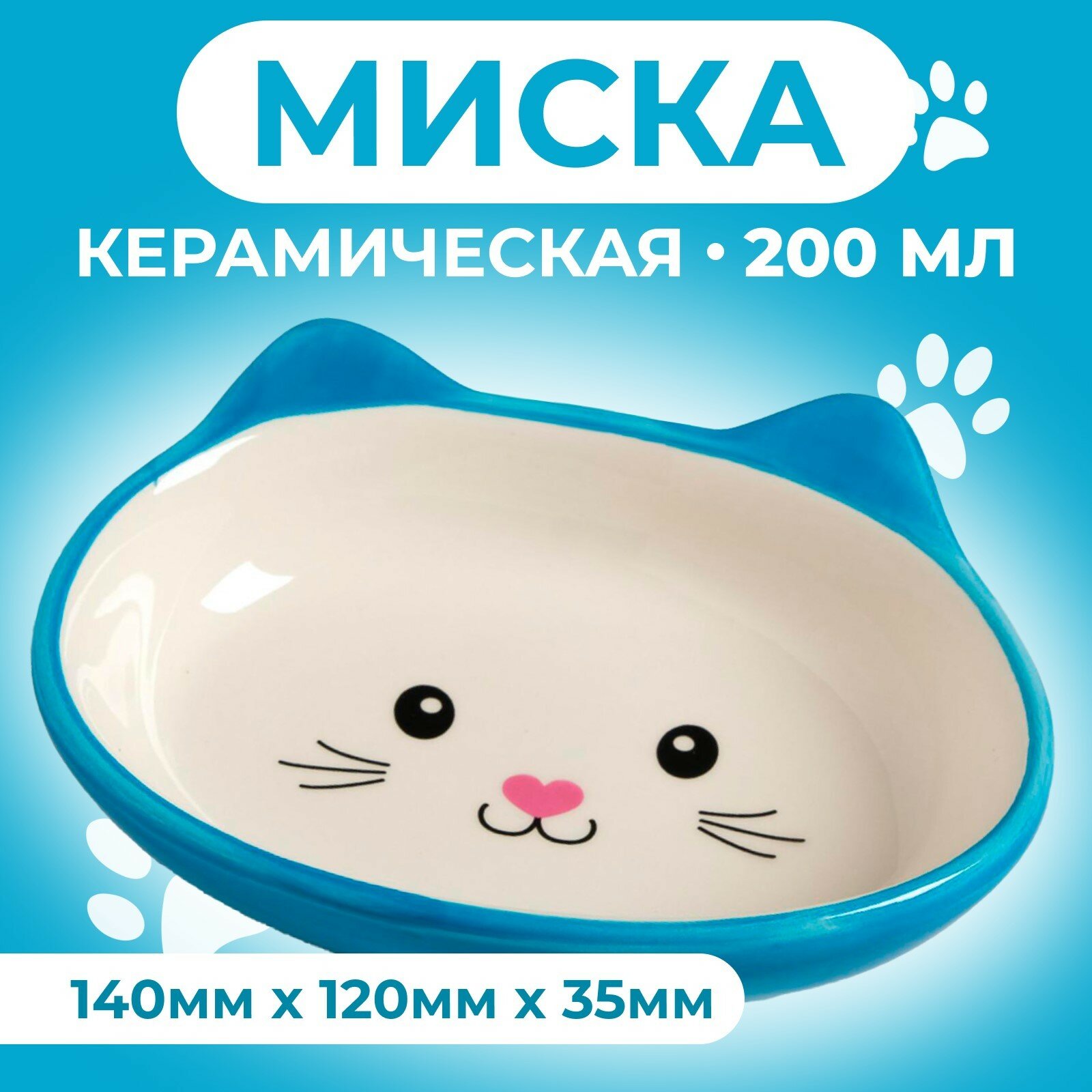 Отзывы на Миска керамическая овальная "Кошачья мордочка", 14 х 12 х 3,5 см, 200 мл, синяя