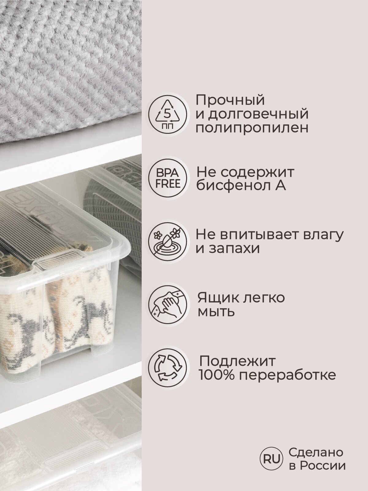 | Особенности | прозрачный / ручки для переноски / с крышкой |