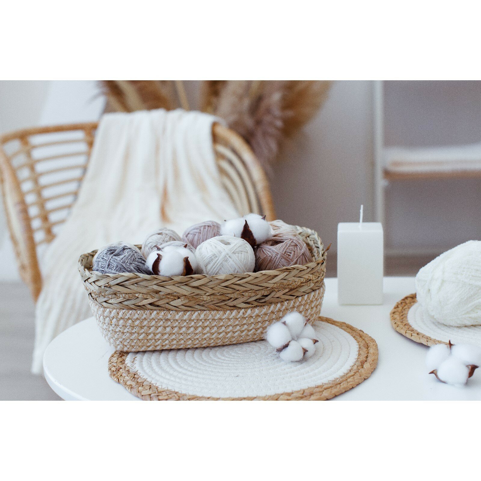 Корзина для хранения плетеная, вязаная размер 15*12см, бежевая