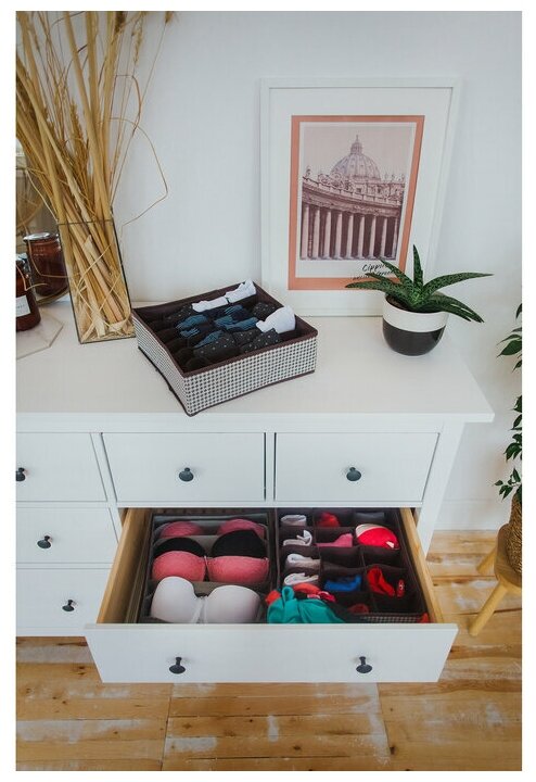Отзывы на Органайзер для хранения белья Доляна «Вилли», 24 ячейки, 35×30×10 см, цвет бело-коричневый