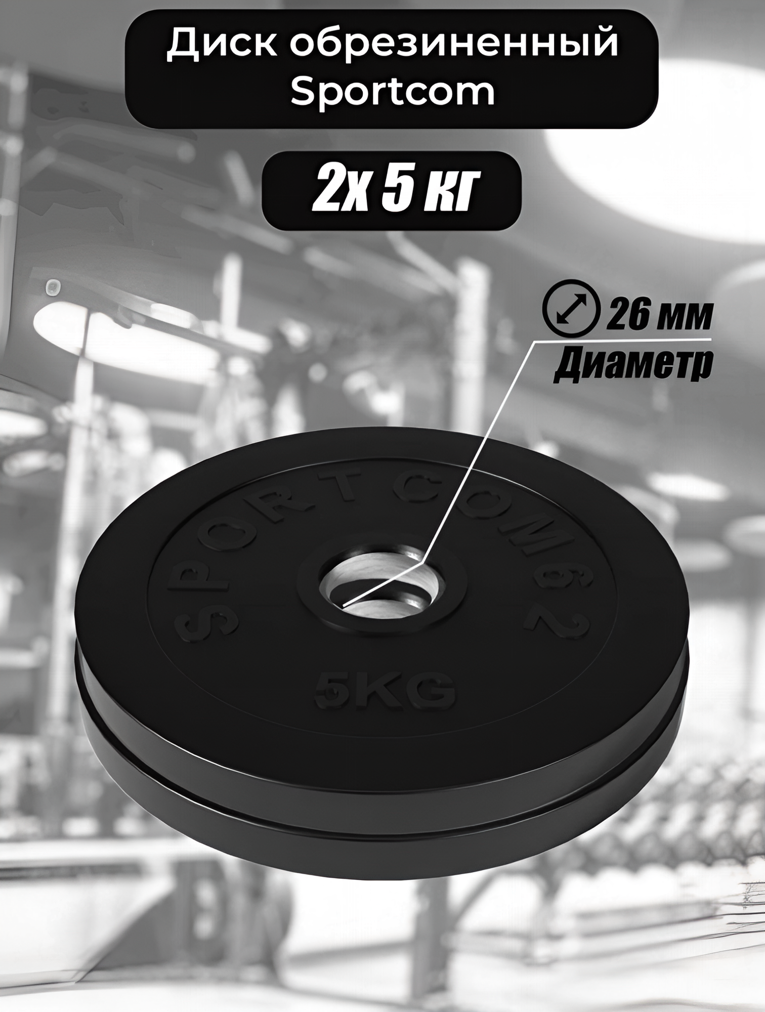 Комплект дисков Sportcom обрезиненных 26мм, 5 кг х 2шт информация: