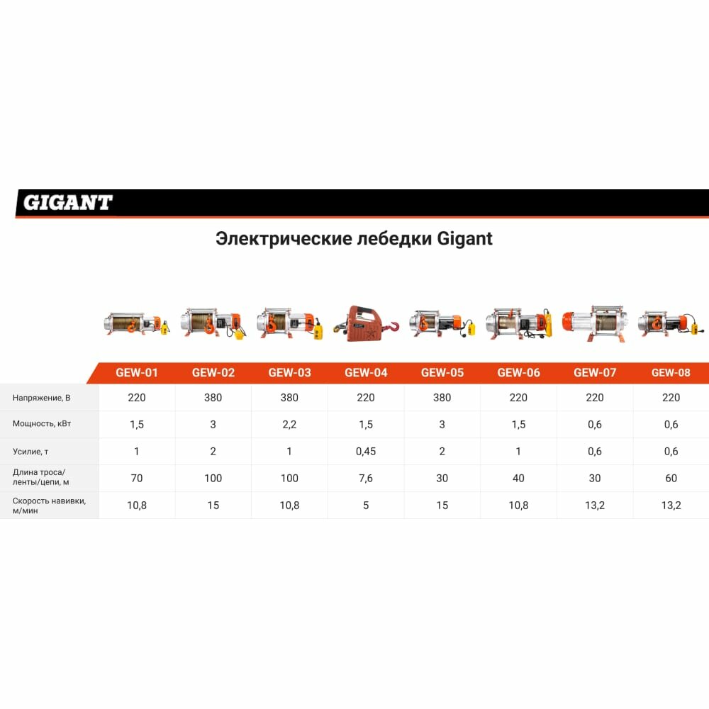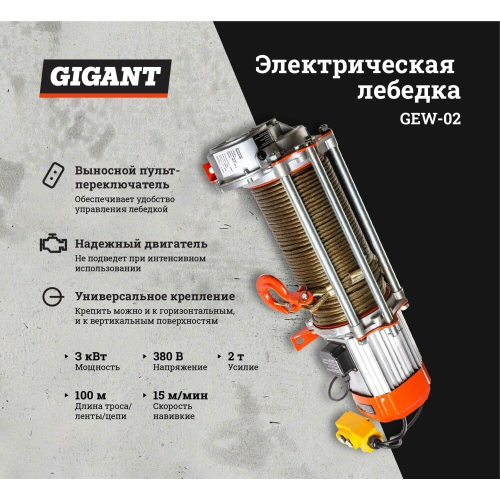 Электрическая лебедка Gigant 1000/2000 кг, 380 В, 100/50 м GEW-02 информация: