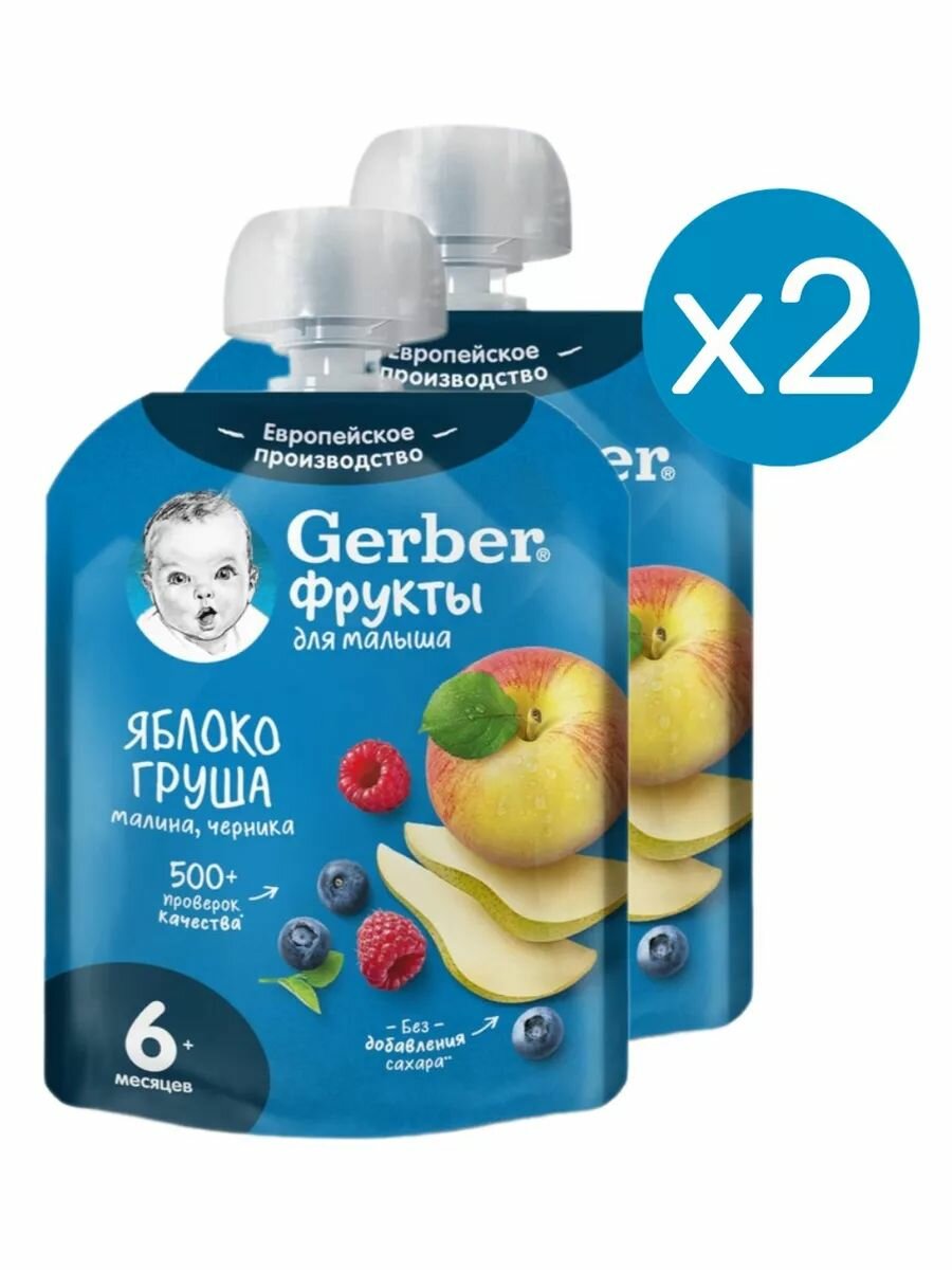 10 цен на Фруктовое детское пюре Gerber яблоко-груша-малина-черника с 6 месяцев 90 г 2 шт